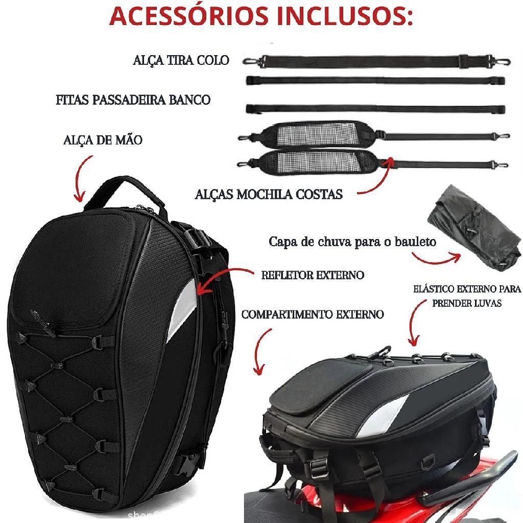Ideal para viagens, entregas, trabalho ou uso diário, permite transportar roupas, produtos e acessórios com amplo espaço interno — comporta 1 capacete e ainda sobra espaço.