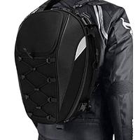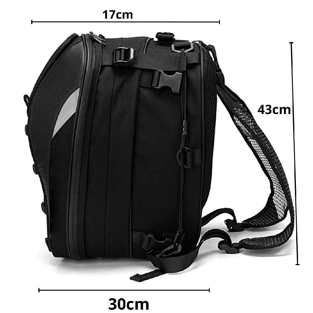Pode ser utilizado tanto como baú fixado na moto quanto como mochila ou bolsa transversal, proporcionando versatilidade total no transporte.