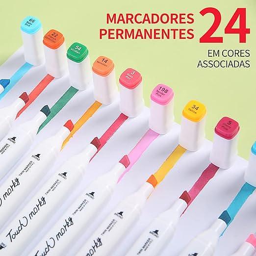 🖌️ Kit Canetas Coloridas Ponta Dupla com 24 Cores Vibrantes – Organização, Precisão e Criatividade em Suas Mãos!