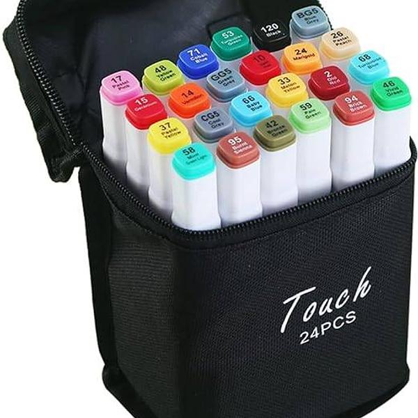 Organize suas cores com facilidade! Cada caneta possui tampa codificada, facilitando a identificação rápida. O design ergonômico garante conforto mesmo em longas sessões de desenho, e o elegante estojo preto facilita transporte e armazenamento.