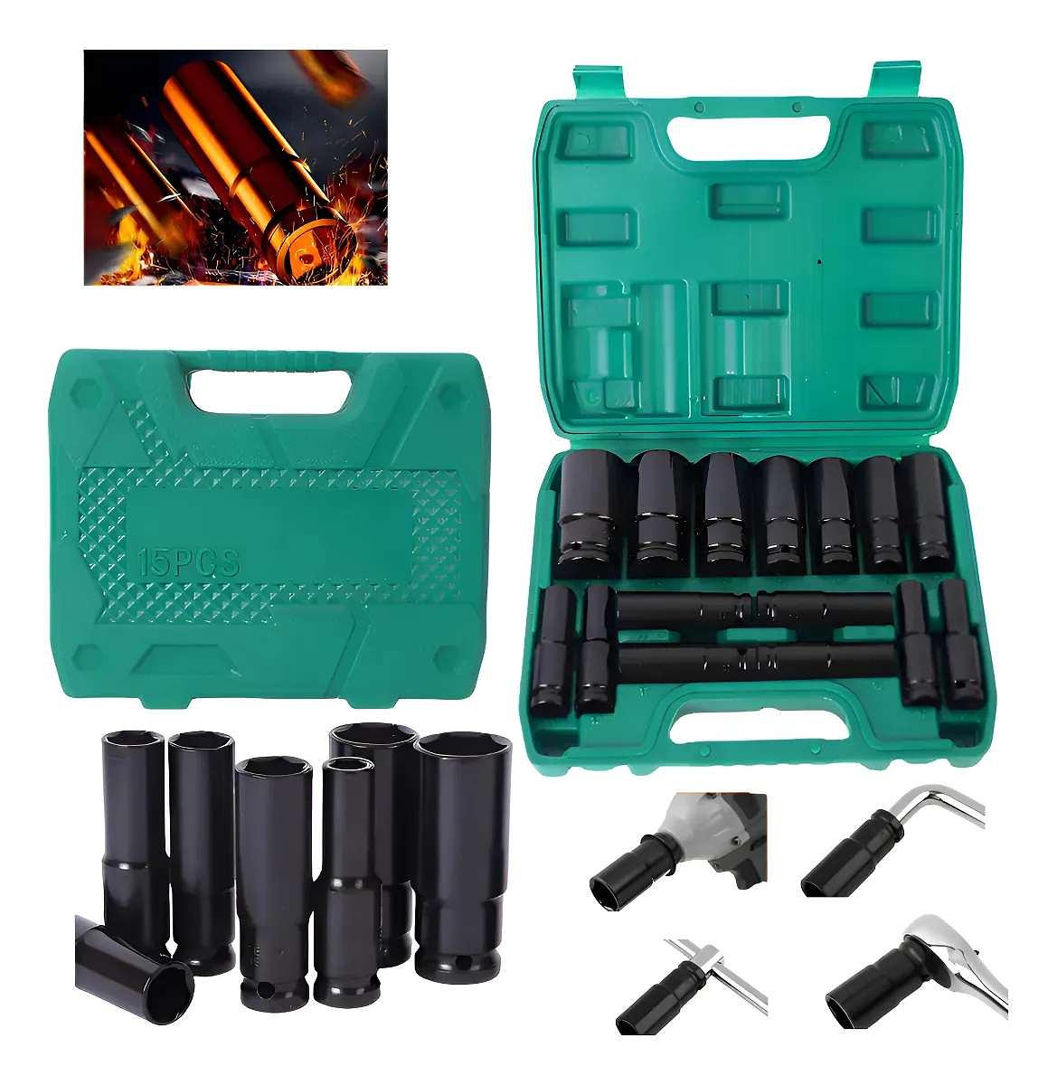 🔧 Jogo de Soquetes Longos Sextavados de Impacto 1/2" – 15 Peças (8 a 32 mm)