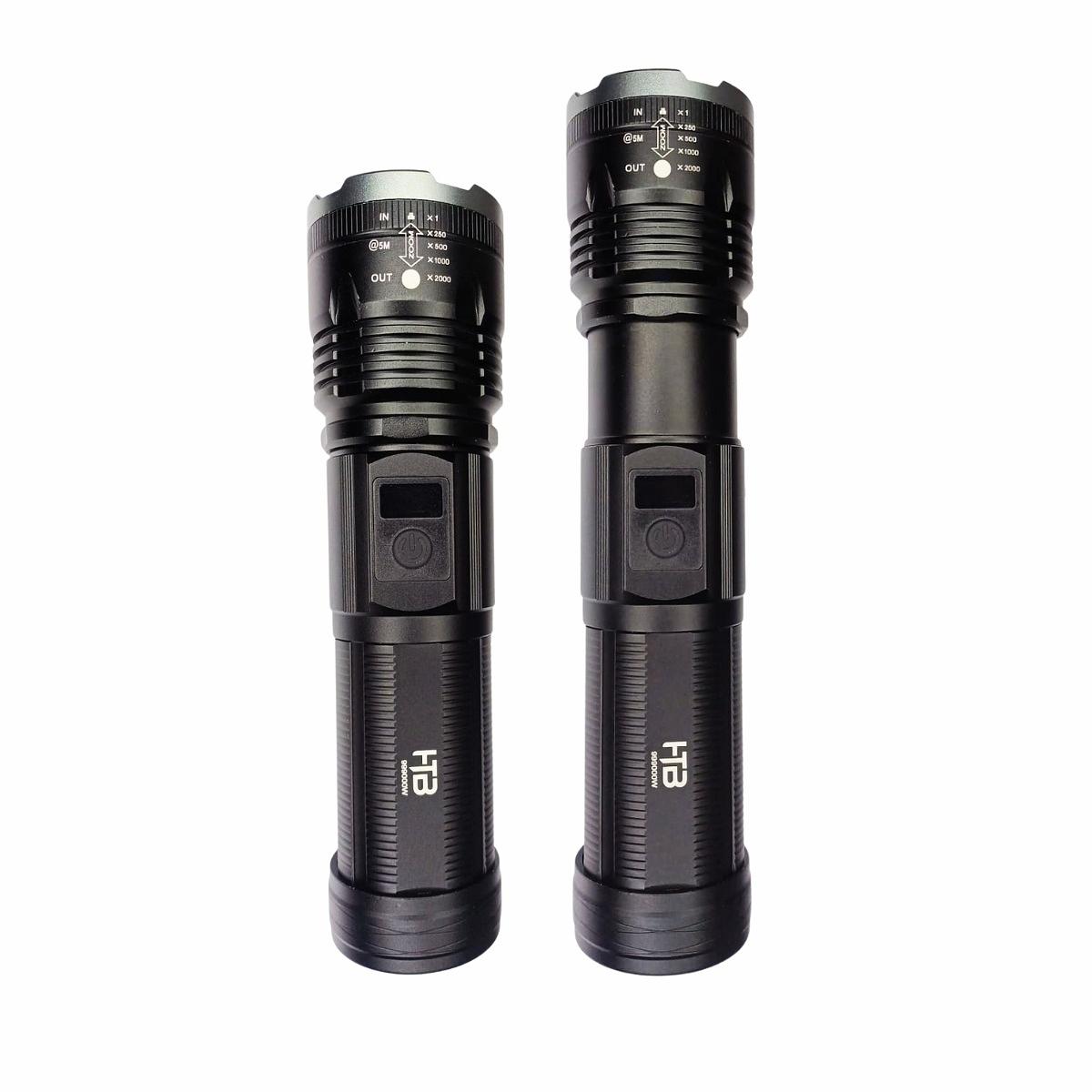 Zoom Telescópico Ajustável: Regule o foco conforme a necessidade – de feixe amplo (para iluminar áreas grandes) até foco preciso (para visão de longa distância), com ampliação de X1 a X2000.
