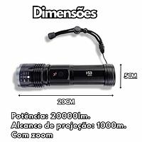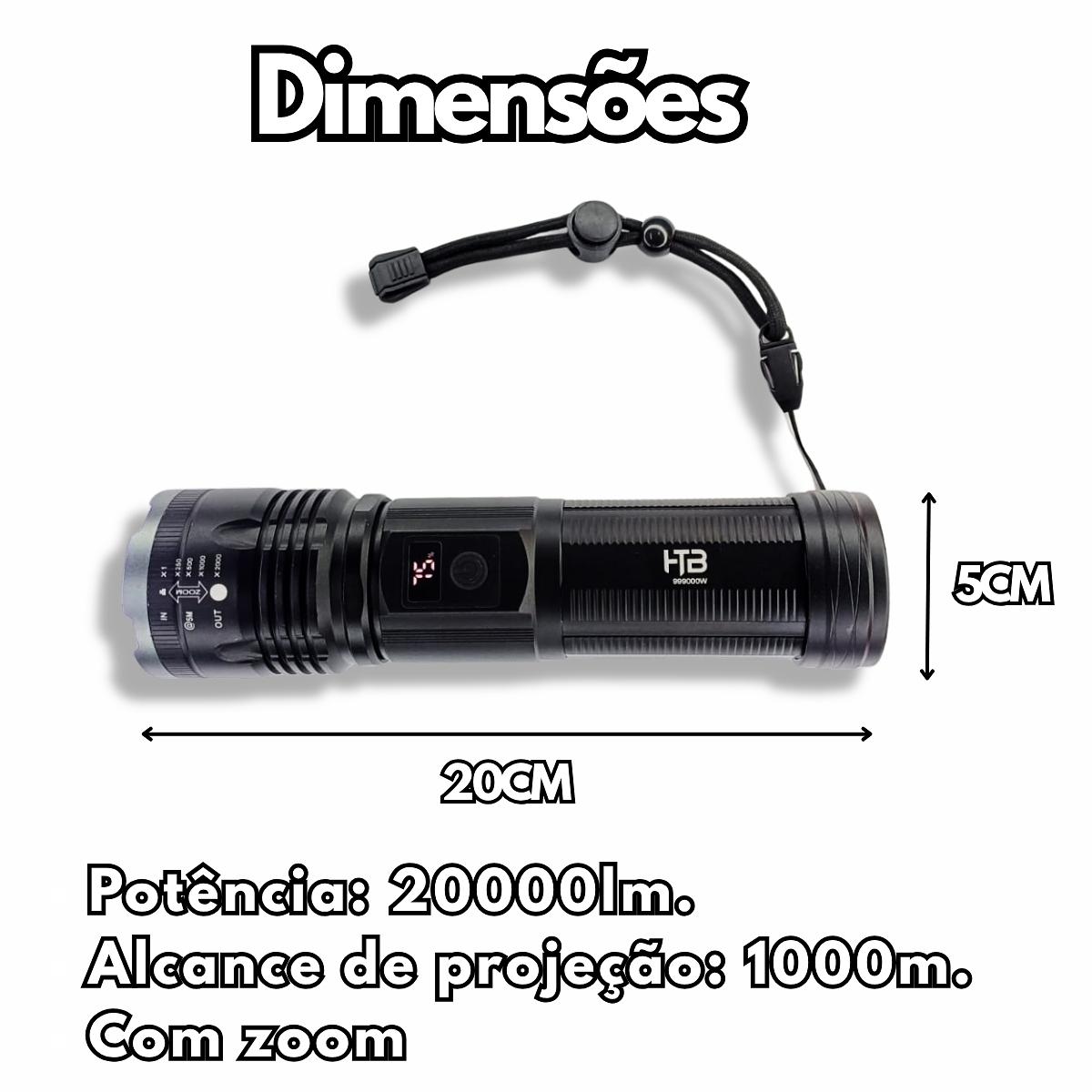 Ultra Potente: Emite um feixe de luz super brilhante com alcance de até 1 km, ideal para locais com pouca ou nenhuma iluminação.