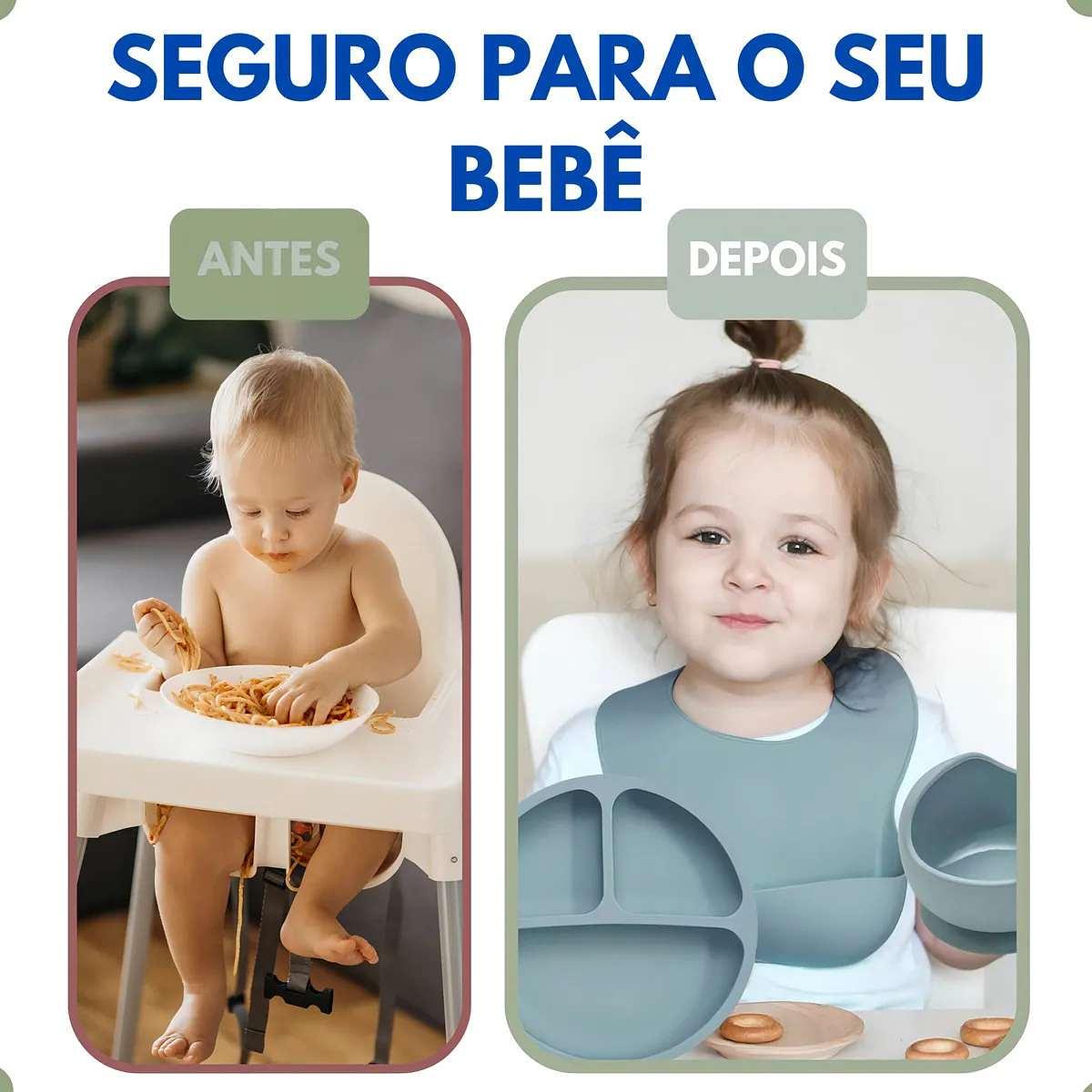 O Kit Alimentação Infantil foi desenvolvido para tornar as refeições mais organizadas e seguras. Produzido em silicone 100% livre de BPA, é resistente, fácil de limpar e ideal para o dia a dia do bebê.