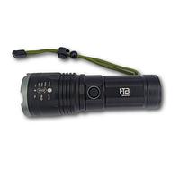 Operação simples com botão traseiro e zoom ajustável girando a cabeça da lanterna.