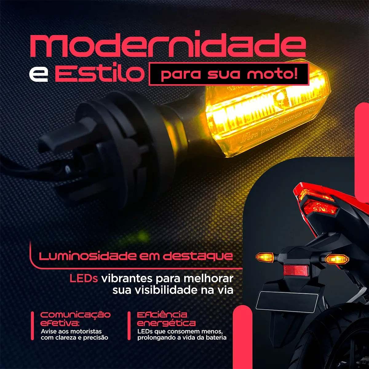 Garanta mais segurança, visibilidade e estilo para sua moto com o novo modelo de seta LED sequencial. Produzida com lente cristal e LEDs de alto brilho, oferece iluminação potente e moderna, além de encaixe perfeito sem necessidade de adaptações.