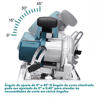 • 🔄 Ângulo de corte ajustável de 0° a 45°: cortes retos ou inclinados com precisão.