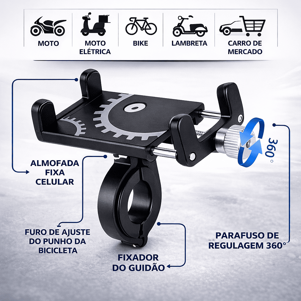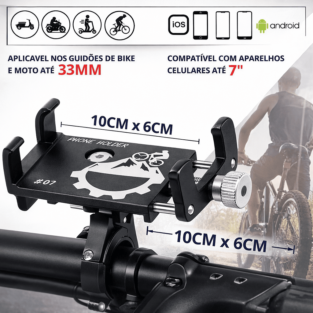 O Suporte de Celular para Bicicleta em Alumínio é ideal para quem deseja utilizar GPS, aplicativos ou câmera com segurança durante a pedalada. Fabricado em alumínio resistente, oferece máxima estabilidade para o aparelho mesmo em terrenos irregulares.